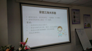 首先胡老师对家长做了一些基本的了解,并要求家长画了一个关于家庭的三角图。(在沙龙中间进行说明)